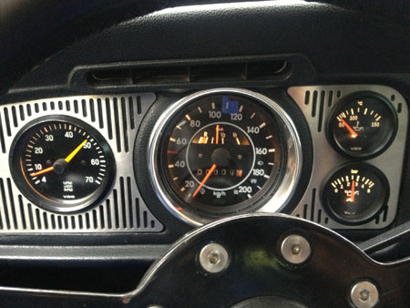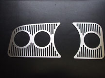 12. Edelstahlblenden in Originalform für rechts u. links neben dem Käfertacho mit Schlitzen fast wie original. Das Edelstahlblech ist 2,5 mm dick u. hat eine geschliffene Oberfläche.